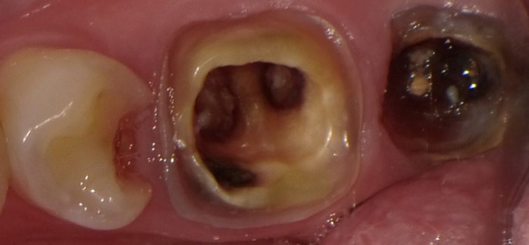 むし歯の穴に詰まった汚れが細菌によって分解され、ニオイの原因になります。さらに虫歯が進行して神経が死ぬ(歯髄壊死)と、内部で細菌が増殖し、膿が溜まることで強い腐敗臭を伴うこともあります。